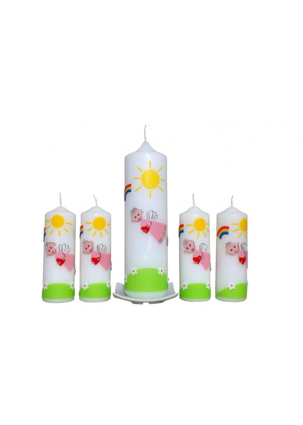 Es handelt sich hier um ein Taufkerzenset Engelchen und Wiese rosa mit Aufbewahrungskarton.