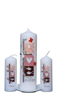Es handelt sich hier um ein Taufkerzenset Sommer rosa.